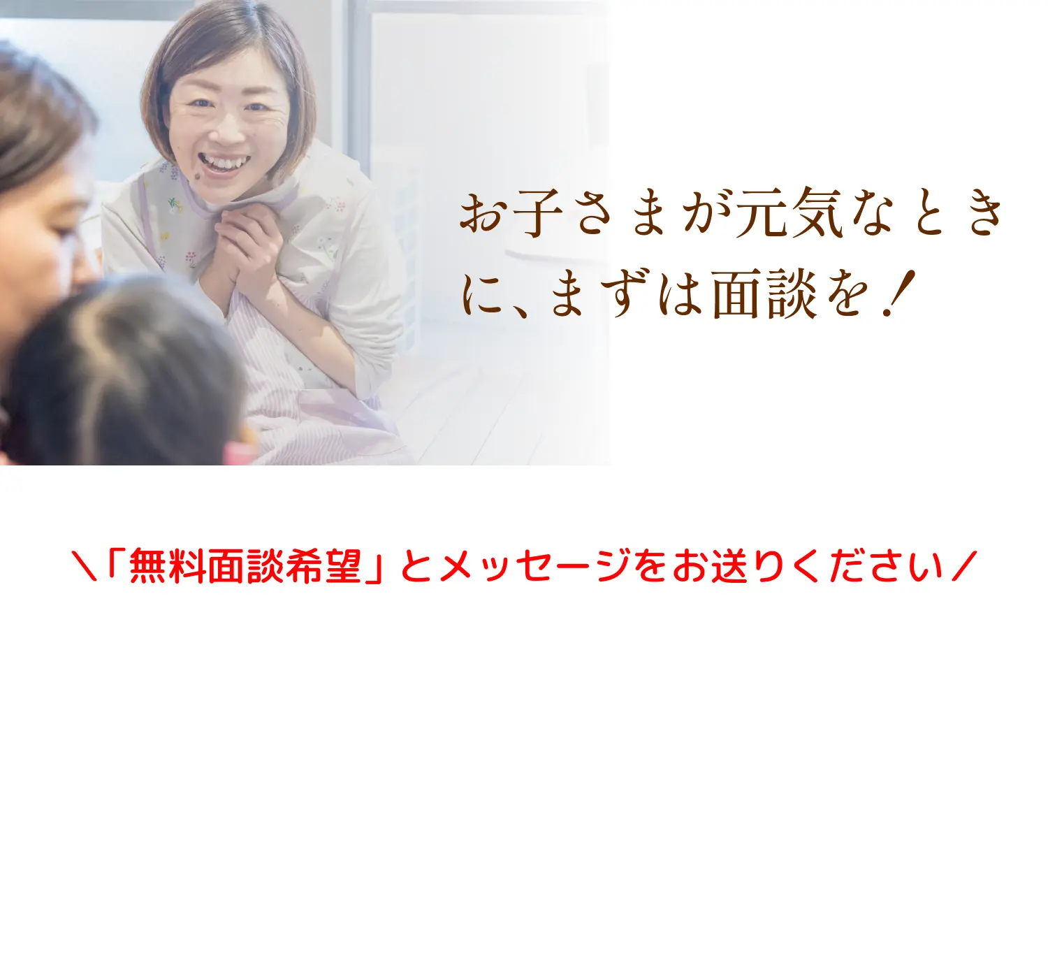お子さまが元気なときに、まずは面談を!